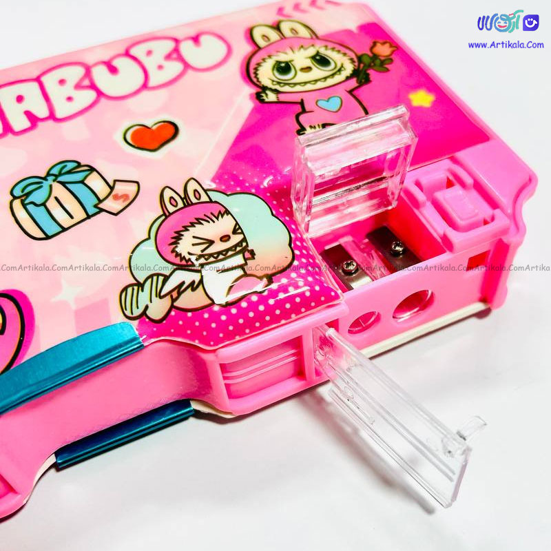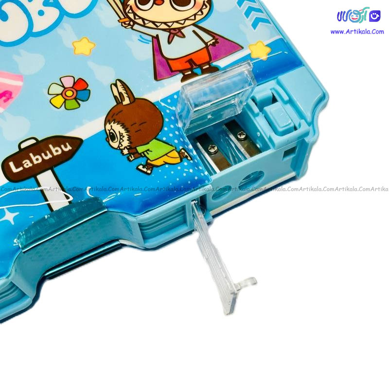 جامدادی مگنتی طرح لبوبو ساخت کشور چین است . این جامدادی دارای دو درب مگنتی بوده که به راحتی باز و بسته می شود و در عین حال از افتادن نوشت افزار نیز جلوگیری میکند