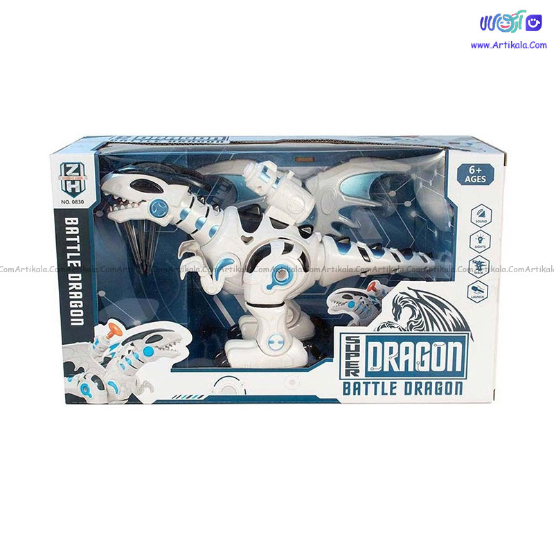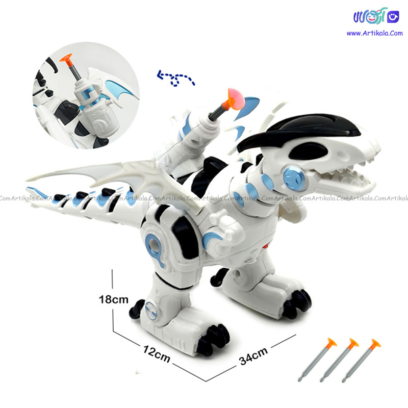 پخش صدا و نور همراه با حرکت ربات . سنسوری و کنترلی نیست و به صورت اتوماتیک حرکت میکند و صدا و نور دارد.ربات دایناسور با قابلیت پرتاب تیر یک عدد مازول پرتاب تیر بالای دایناسور وجود دارد که با گذاشتن تیر داخل آن و زدن دکمه روی آن تیر پرتاب میشود