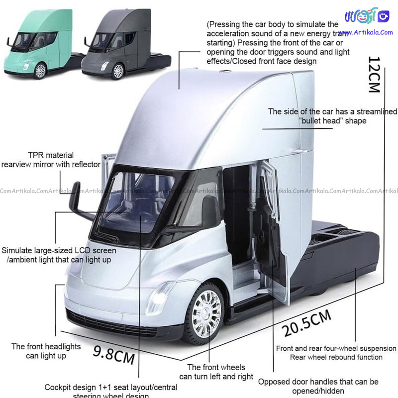 ماکت فلزی تریلی تسلا موزیکال و چراغدار مقیاس 1:24
