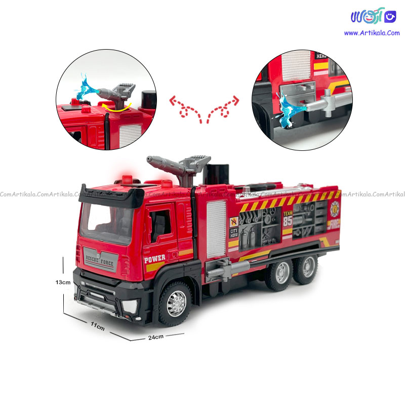 ویژگیهای ماکت ماشین فلزی آتش نشانی آبپاش موزیکال و چراغدار مدل 8677b