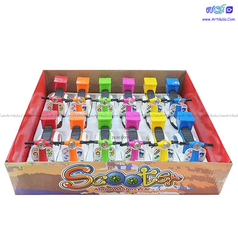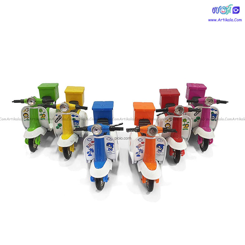 موتور سیکلت فلزی اسباب بازی وسپا صندوق دار آیتم 3310YT محصولی زیبا که در رنگبندی شاد و متنوع ساخته شده است . این محصول قابلیت حرکت به صورت عقب کش را داشته و لیکن چراغدار و موزیکال نیست و قابلیت باز شدن درب باکس را دارد